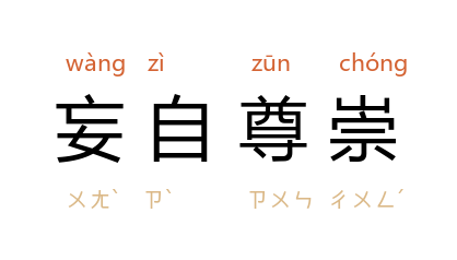 妄:过分地;尊:高贵。过高地看待自己。形容狂妄自大。