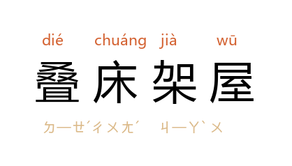 出处北齐 颜之推《颜氏家训 序致》:“魏晋已来,所著诸子,理重事复,递相模斅,犹屋下架屋,床上施床耳。”