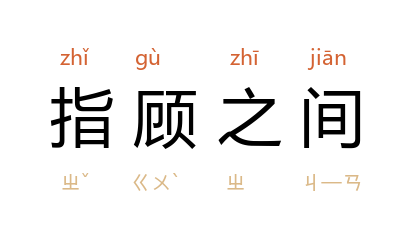 指:用手指;顾:回头看。用手一指或回头一看的瞬间。比喻时间十分短暂