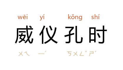 威仪:庄严的仪容和举止;孔:甚,很。仪容严肃,举止庄重,很合时宜。