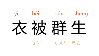 衣被:给人衣穿,比喻加惠于人;群生:众生。比喻恩惠广施。