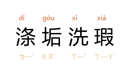 涤:清除;垢:污秽;瑕:瑕疵。指清除缺点过失,清除污泥浊水。