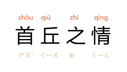 首丘:头向着狐穴所在的土丘。传说狐狸将死时,头必朝向出生的山丘。比喻不忘本。也比喻暮年思念故乡。