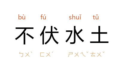 水土:指一地的饮水、气候、环境等。不能适应某地的气候和饮食习惯。