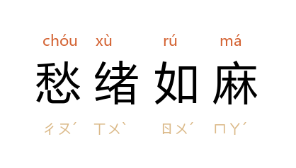 愁绪:忧愁的心绪。麻:乱麻。忧愁的思虑像乱麻一样。形容烦愁之极。