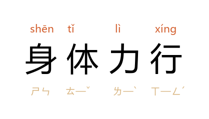 出处西汉 刘安《淮南子 泛论训》:“圣人以身体之。西汉 戴圣《礼记 中庸》: 力行近乎仁。”