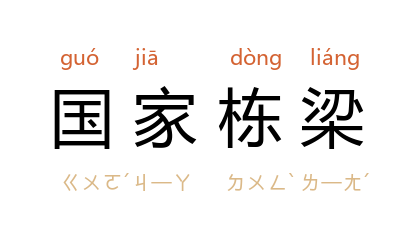栋梁:支撑房架的大梁。这里比喻责任或作用大。肩负国家重任的人。