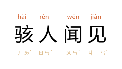 出处宋·孟元老《东京梦华录·东角楼街巷》:“屋宇雄壮,门面广阔,望之森然,每一交易,动即千万,骇人闻见。”