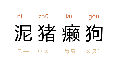 出处清·曹雪芹《红楼梦》第七回:“天下竟有这等人物!如今看来,我竟成了泥猪癞狗。”