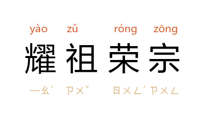 出处元 石君宝《曲江池》第四折:“今幸得一举登科,荣宗耀祖。”