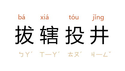 例子拔辖投井,于是口涌鼻溢,濡首及乱。晋·葛洪《抱朴子·洒诫》