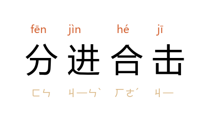 出处毛泽东《中国革命战争的战略问题》第五章第六节:“将敌军对我军的战略上的分进合击,改为我军对敌军的战役或战斗上的分进合击。”