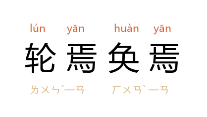 注音ㄌㄨㄣˊ 一ㄢ ㄏㄨㄢˋ 一ㄢ