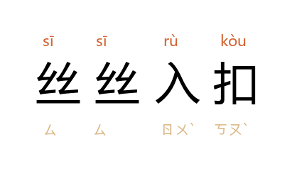 每条丝线都从筘齿中穿过。比喻文章、艺术表演等细密合拍。扣:织绸的筘;丝丝:每一根丝。