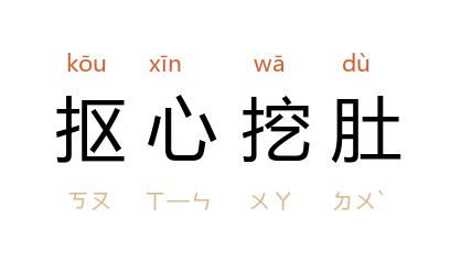 出处清 张春帆《宦海》第11回:“大家都听着木小端的话儿,一个个抠心挖肚的想了许多法儿。”