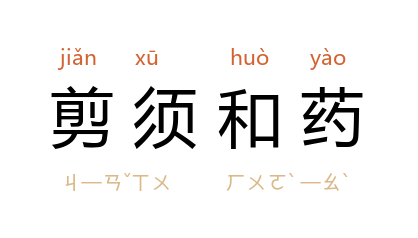 须:胡须;和:混和,拌。剪掉胡须拌药。比喻上级体恤下属。