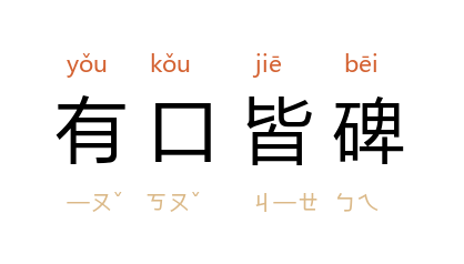 碑:记功的石碑;皆:都是。所有人的嘴都是记载功德的碑石。形容为人们普遍称颂。