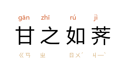 荠:甜菜。荼菜虽苦,但是和内心的痛苦相比,觉得就像荠菜一样甜美。后指事如乐意为之,虽苦亦甜。同“甘心如荠”。