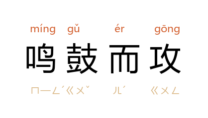 出处先秦 孔子《论语 先进》:“季氏富于周公,而求也为之聚敛而附益之。子曰:‘非吾徒也,小子鸣鼓而攻之可也。’”