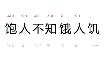 饱:吃足;饥:饥饿。比喻处境好的人,不能理解别人的苦衷。