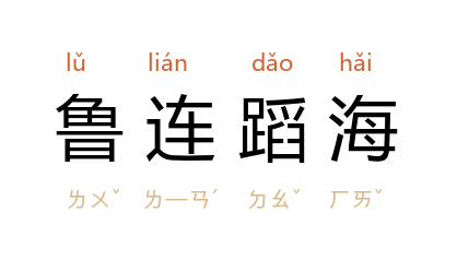 战国时齐国人鲁仲连不满秦王称帝的计划,曾说,秦如称帝,则蹈东海而死。后以“鲁连蹈海”表示宁死而不受强敌屈辱的气节、情操。