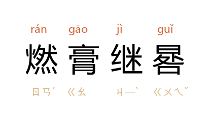 燃:点燃;膏:油脂,指灯油;继:接续;晷:日影,日光。点上灯烛,接续日光。形容夜以继日地工作与学习。
