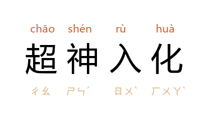 神:神妙;化:化境,极高的境界。形容文艺、技艺达到极高的境界。