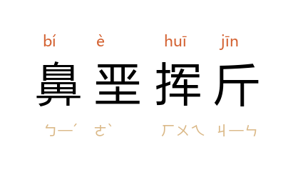 出处典出《庄子 徐无鬼》:“郢人垩漫其鼻端,若蝇翼,使匠石斫之,匠石运斤成风,听而斫之,尽垩而鼻不伤。”