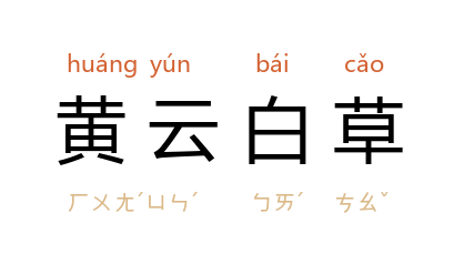 注音ㄏㄨㄤˊ ㄩㄣˊ ㄅㄞˊ ㄘㄠˇ
