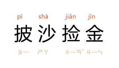 披:分开;捡:挑选。拨开沙子,挑选金子。比喻从大量的东西中选取精华。