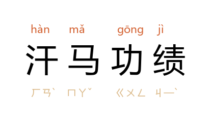 汗马:战马奔驰出汗。指在战场上建立战功。现指对事业的辛勤贡献。