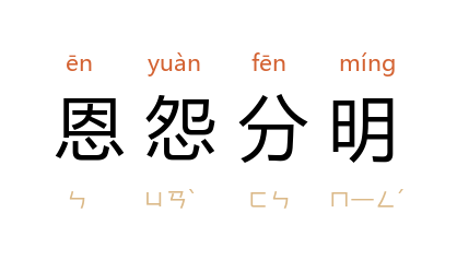 恩:恩惠;怨:仇恨。对于恩惠和仇恨的界限分得十分清楚,毫不含糊。