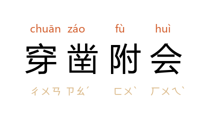 穿凿:硬要把讲不通的道理讲通;附会:把毫无关系的事硬拉在一起。指勉强生硬解释;把没有意义硬是说成有某种意义。