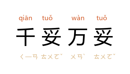注音ㄑ一ㄢ ㄊㄨㄛˇ ㄨㄢˋ ㄊㄨㄛˇ