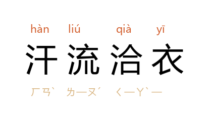 汗出甚多,湿透衣服。形容极其惶恐羞愧。