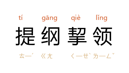 抓住纲绳;提起衣领。比喻抓住要领;简明扼要。纲:鱼网的总绳;挈:提起。