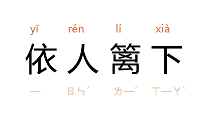 依:依附,依靠;篱:篱笆。依附于他人篱笆下。指依靠他人生活。