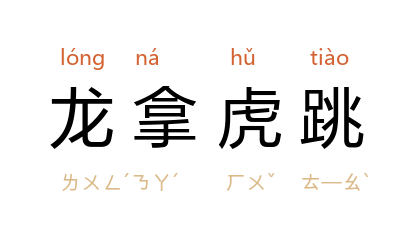拿:抓,握。像龙抓东西、老虎跳跃一样强劲有力。比喻笔势遒劲奔放。