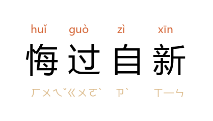 悔:悔恨;过:过失;错误;自新:使自己成为新人。指改正错误;重新做人。