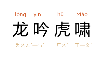 吟:鸣、叫;啸:兽类长声吼叫。像龙一样长鸣;像虎一样咆哮。原比喻同类事物互相感应。现多比喻吟诵的声音抑扬顿挫。也用以形容响声洪大;气势盛大。