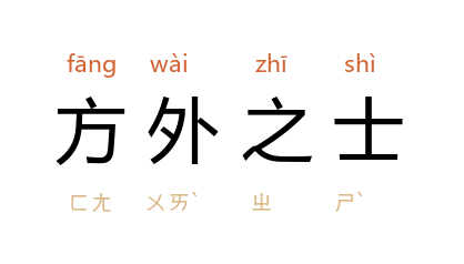 方外:世外。指言行超脱于世俗礼教之外的人。后指僧道等出家人。