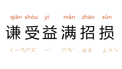 谦:谦逊,虚心;受:得到;益:好处;满:自满,骄傲;招:招惹;损:损害。自满会招致损失,谦虚可以得到好处。