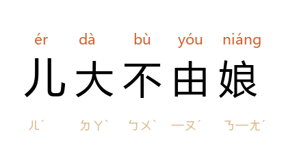 出处清 西周生《醒世姻缘传》第89回:“别说我是他妗子,我就是他娘,他‘儿大不由娘’,我也管不的他。”