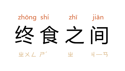 出处春秋·鲁·孔丘《论语·里仁》:“君子去仁,恶乎成名?君子无终食之间违仁,造次必于是,颠沛必于是。”