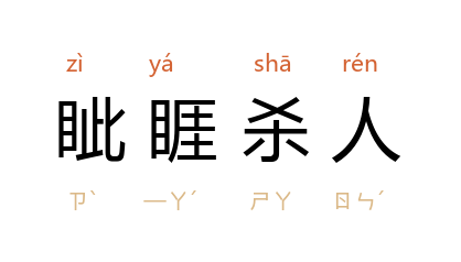 眦:眼角;睚:眼眶。因为别人瞪眼就杀了他。形容为人狭窄骄横。