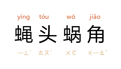 出处宋 赵师侠《水调歌头》:“蝇头蜗角微利,争较一毫芒。”宋 刘清夫《玉楼春》词:“蝇头蜗角都休竞。万古豪华同一尽。”