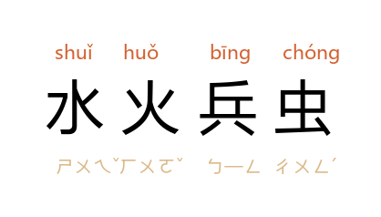 注音ㄕㄨㄟˇ ㄏㄨㄛˇ ㄅ一ㄥ ㄔㄨㄥˊ