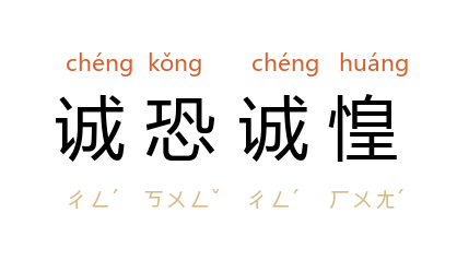 诚:确实;惶:害怕。惶恐不安。指非常小心谨慎以至于惶恐不安。