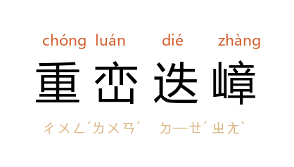 重峦迭巘:山峰一个连着一个,连绵不断。同“重峦迭嶂”。