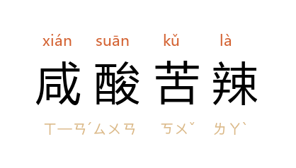 注音ㄒ一ㄢˊ ㄙㄨㄢ ㄎㄨˇ ㄌㄚˋ